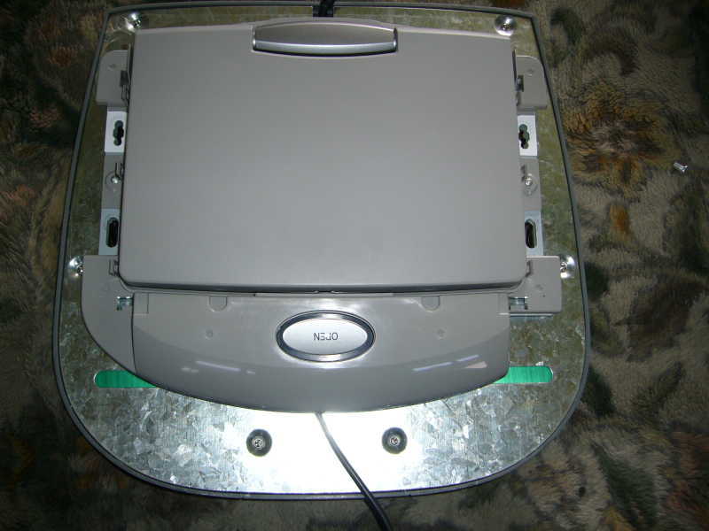 上に載っているモニターが純正の9万円(作業代別)位するディーラーオプション(略してDオプ)のフリップダウン。