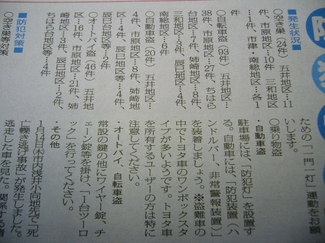 どれどれ?ちょっと地域ネタですけどコンプリートがあるのはたぶん五井地区であろう・・・・で4件の自動車盗難。
