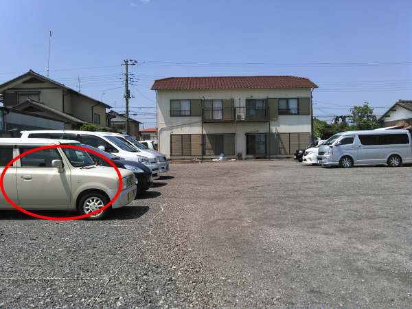 この駐車場。まぁよりによっていちばん道路から見える所だわさ。