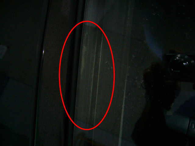 ちょっとわかりにくいですが窓枠、警察が指紋を採取したアルミ粉の跡です。