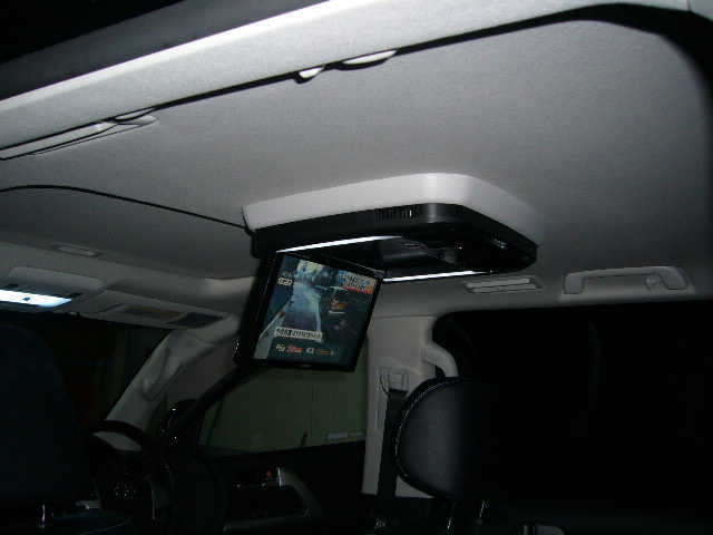 ランクル200のサンルーフ付きにフリップダウンモニターの取り付けです。