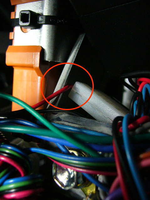 左下は24ピンコネクタでドアの入力はAUX出力等が、左上はヘビーゲージワイヤー。リモートスタート時に使用する大容量の電気にも対応する太い配線です。